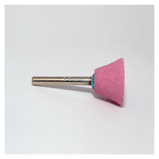 Tělísko brousící keramické kuželové zkosené 32/16x20mm, stopka 6mm Tyrolit 32461-3237|zrnitost 60, tvrdost O||Keramické brousící tělísko Tyrolit, umělý korund růžový, použití pro nerez oceli a ocel do 55HRC (ocel tř. 11, ocel do 67HRC)||k. č. 436170