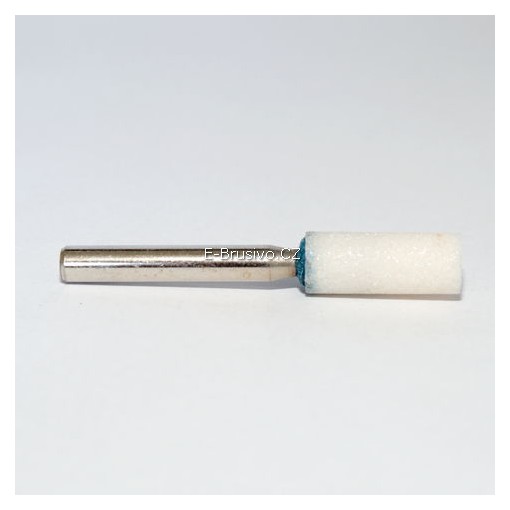 Brusné tělísko keramické válcové se stopkou 10x25-6mm Tyrolit 32151-1140|zrnitost 80, tvrdost M||Keramické brousící tělísko Tyrolit, umělý korund bílý, použití pro ocel řady 11, vhodné i pro ocel 55 HRC a litinu