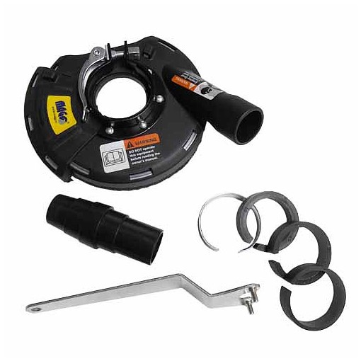 Kryt s kartáčovým věncem pro úhlové brusky na odsávání prachu při broušení||Použítí krytu spolu s brusným kotoučem, brusným talířem, hrnkovým brusným kartáčem apod. zajistí bezprašné broušení dřeva, plastů, nátěrů, podlah apod.|Vhodný pro úhlové brusky 115mm a 125mm|Kryt není vhodný na použití při broušení kovů. Je možné otevření čela krytu pro případ potřeby broušení v rohu.||Součásti balení jsou redukční vložky, upínací klíč, adaptér pro připojení vysavače||Průměr upínacího věnce bez redukčních vložek je 52mm