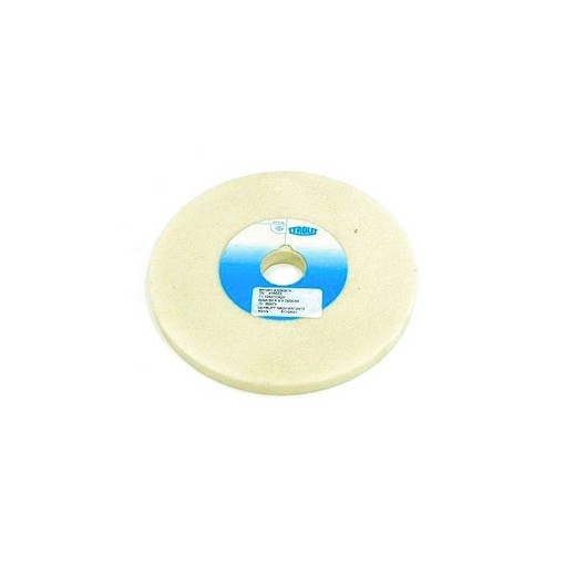 Tyroli brousící kotouč jednostranně zkosený pro broušení pil, dvouvrstvý|Zrnitost 60/80|Tvrdost L/M|Složení 99BA60L8V40 Umělý korund bílý s keramickým pojivem||Broušení ocelí, obvodové broušení ozubení a pil měkčí materiál, stále ostrý.||53951-2039