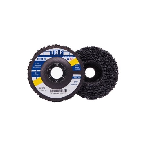 Brusný kotouč Politaf dark netkaný nylon s abrazivem určený pro úhlové brusky.||Použití: odstraňování rzi, čištění opotřebovaných povrchů, svarů, forem atd.|Pružná a elastická struktura zajišťuje výjimečný čisticí výkon bez poškození nebo úpravy původního tvaru obrobku.|Max. otáčky 11000