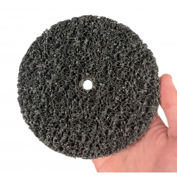 Brusný kotouč Politaf dark netkaný nylon s abrazivem, průměr 100mm, tloušťka 13mm, upínací otvor pro stopku 10mm, určeno pro vrtačky.||Použití: odstraňování rzi, čištění opotřebovaných povrchů, svarů, forem atd.|Pružná a elastická struktura zajišťuje výjimečný čisticí výkon bez poškození nebo úpravy původního tvaru obrobku.|Max. otáčky 6000