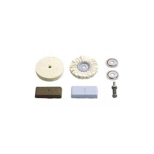 Praktická sada k leštění znečištěných, zašlých nebo zrezivělých kovových povrchů, dřeva, plastů, neželezných kovů a karoserií.||Leštící plstěný kotouč a čisticí pasta k odstraňování nečistot|Leštící kotouč ze sukna a leštící pasta k leštění do vysokého lesku.||5-dílná sada obsahuje:|kotouč sukno, otvor 10 mm, pr. 85 mm|plstěný kotouč, otvor 10 mm, pr. 85 mm|upínací trn pro otvor 10 mm|hnědá leštící pasta k předleštění|modrá leštící pasta k doleštění||Rychlost otáček max. 3 000 ot. /min