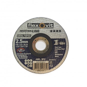 Řezací kotouč Flexovit Long Life - Industrial line s dlouhou pracovní životností. Svým výkonem zvyšuje produktivitu práce.|Použití k řezání ocelí.|Tloušťka kotouče 2-2, 5mm poskytuje extra stabilitu řezání.||66252920021