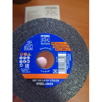 Řezný kotouč Pferd EHT na ocel a nerez s vysokým řezným výkonem a dlouhou životností. Řada PSF.||Univerzální použití na ocel a inox. Tenký rychlý řez bez otřepů. Řezání plechů, profilů i plného materiálu.||Ideální i pro aku úhlové brusky.|